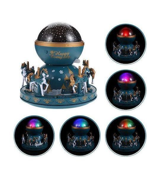 Περιστρεφόμενο Παιδικό Φωτιστικό Projector με Προβολή Αστεριών Καρουζέλ με Εναλλαγές Χρωματισμών Μπλε 38248210