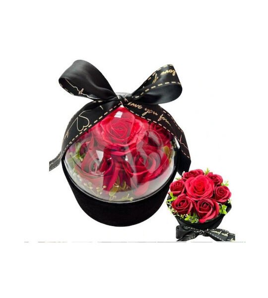Μπουκέτο Τεχνητό Κόκκινο Τριαντάφυλλο με Κουτί Δώρο Αγ Βαλεντίνου 84703 Μαύρο