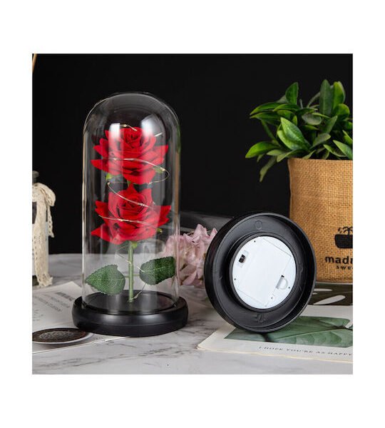 Παντοτινά Τριαντάφυλλα σε Βάζο ABS με Πολύχρωμα LED – RGB LED Κόκκινα 2 Τριαντάφυλλα 19x11cm