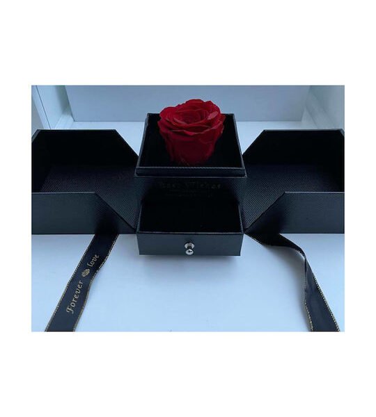 Παντοτινό Κόκκινο Τριαντάφυλλο με Θήκη Κοσμήματος 8.7×8.7cm σε Πολυτελές Κουτί 82306