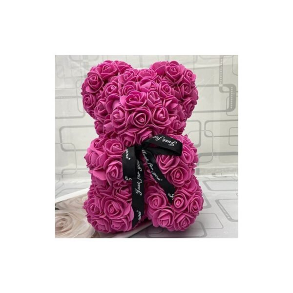 Δωρόσημο Αρκουδάκι από Τεχνητά Τριαντάφυλλα Φούξια 25cm