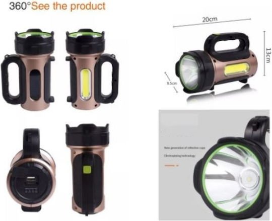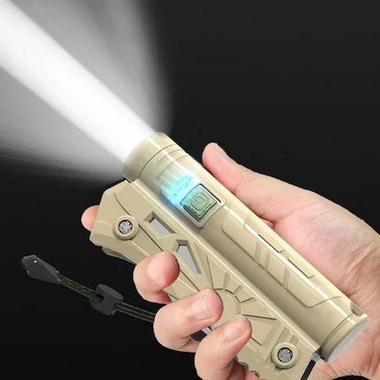 Φακός LED Επαναφορτιζόμενος – Αδιάβροχος με 4 Λειτουργίες Φωτισμού – Πολυεργαλείο Έκτακτης Ανάγκης Χρυσό-110538