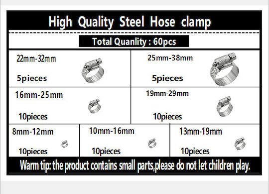 Σφικτήρες Σωλήνων Γραναζιών Ταχυτήτων από Ανοξείδωτο Ατσάλι 8-38 60τμχ
