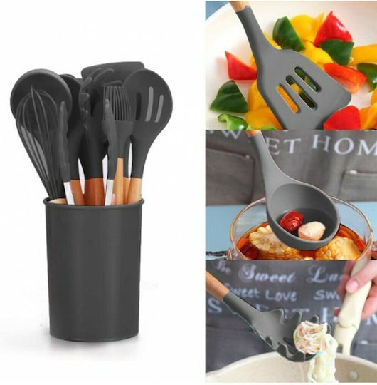 Σετ Εργαλείων Μαγειρικής από Σιλικόνη 12τμχ Μαύρο KUS-1709
