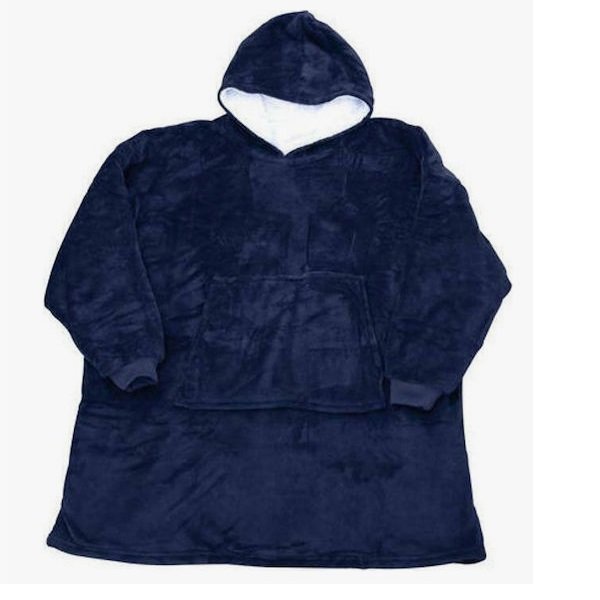 Huggle Κουβέρτα Μπλε Καρώ Βελουτέ με Μανίκια και Κουκούλα 70x90cm
