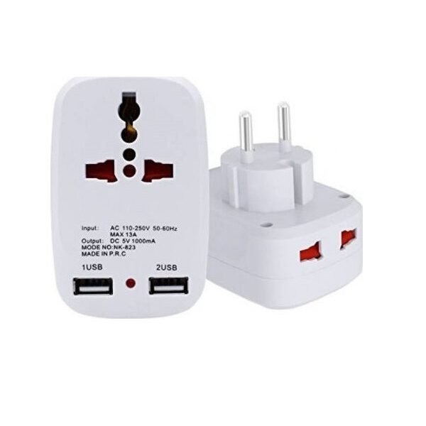 Παγκόσμιος ταξιδιωτικός αντάπτορας πρίζας με 2 USB 1000mA Universal travel adapter NK-823