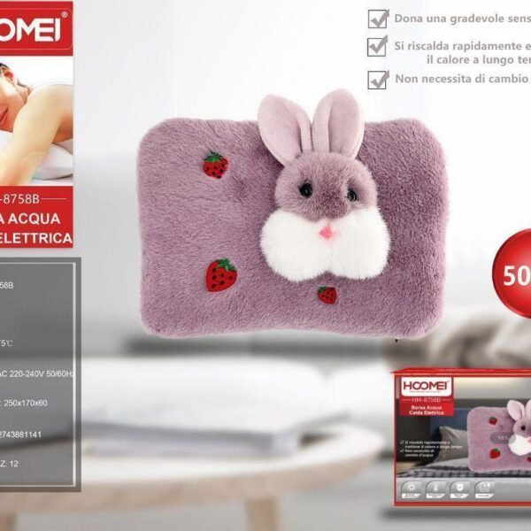 Ηλεκτρική Θερμοφόρα – Μαξιλάρι 500W με Θήκη για τα Χέρια Γενικής Χρήσης 25x17x6cm – Τρισδιάστατο Λαγουδάκι Hoomei HM-8758B Ροζ