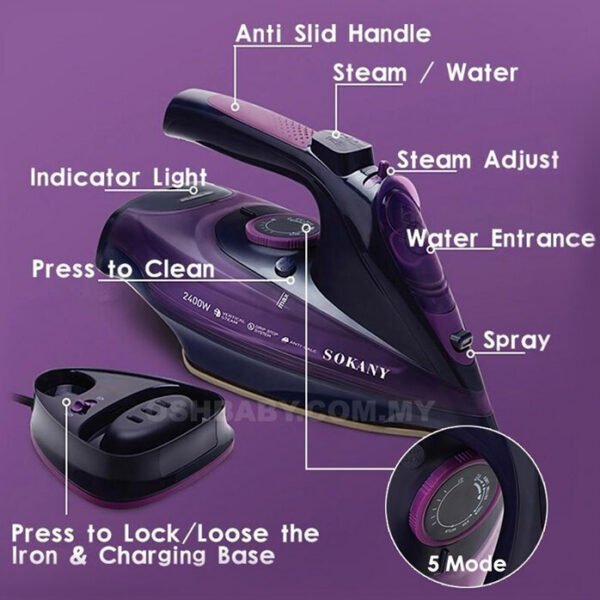 Sokany SK-2085 Σίδερο Ατμού 2400W με Κεραμική Πλάκα και Συνεχόμενη Παροχή 35gr/min Purple
