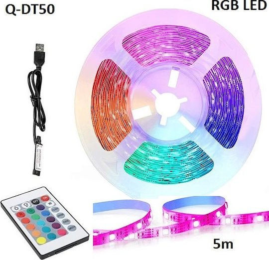 Andowl Αδιάβροχη Ταινία LED Q-DT50 USB 5V RGB Φως 5m Τύπου SMD5050 με Τροφοδοτικό & Τηλεχειριστήριο Q-DT50