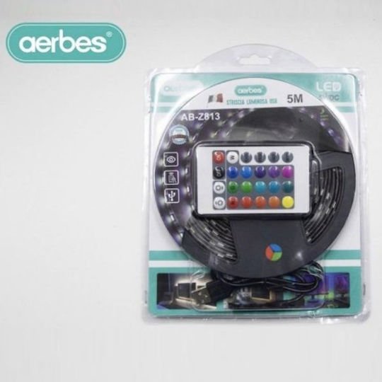 Αδιάβροχη Ταινία LED Aerbes USB 5V RGB Φως 3m με Τροφοδοτικό & Τηλεχειριστήριο AB-Z812