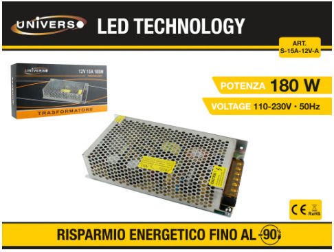 Τροφοδοτικό LED Ισχύος 180W με Τάση Εξόδου 12V Universo S-15AA – Universo