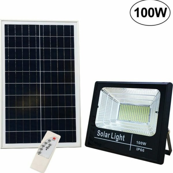 Jortan Στεγανός Ηλιακός Προβολέας LED 100W Ψυχρό Λευκό 6500K με Φωτοκύτταρο και Τηλεχειριστήριο IP66 PANAG006 36963642