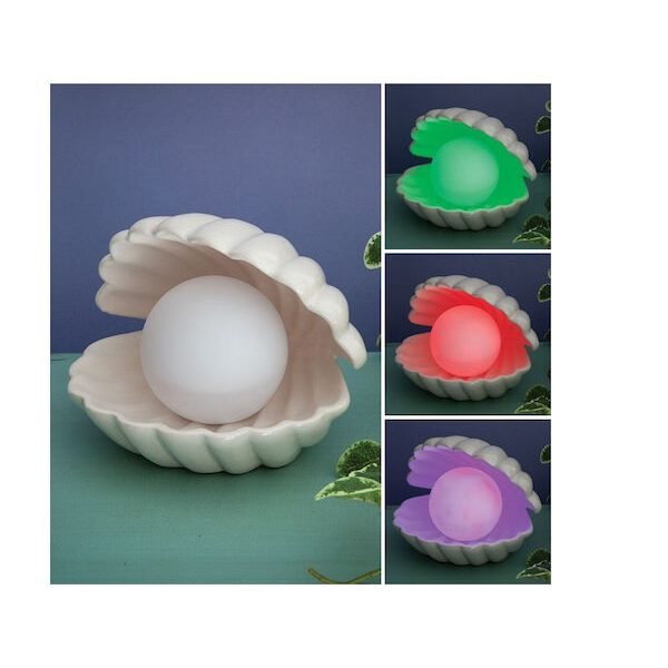Κοχύλι Μαργαριτάρι Επιτραπέζιο Διακοσμητικό Φωτιστικό με Φωτισμό RGB LED Μπαταρίας σε Λευκό Χρώμα 29619-53561 34302032