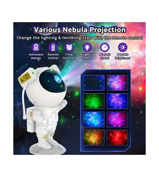 Επιτραπέζιο Διακοσμητικό Φωτιστικό – Προτζέκτορας σε Σχέδιο Αστροναύτη με Φωτισμό Γαλαξία RGB και Τηλεκοντρόλ SK009 Λευκό