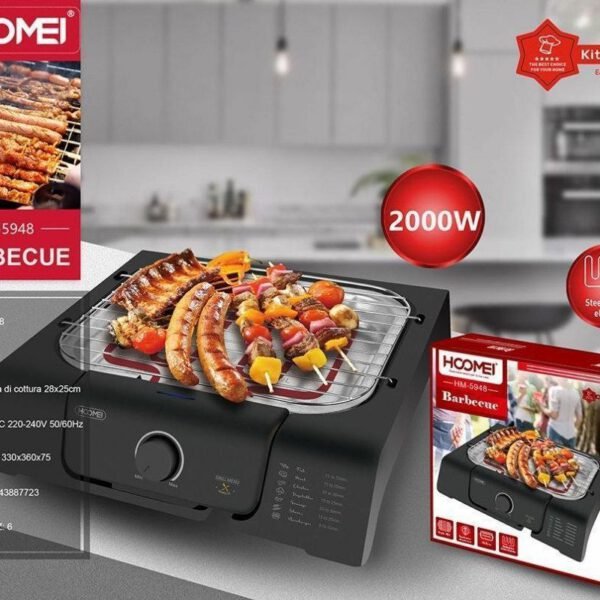 Ηλεκτρική Ψησταριά Σχάρας BBQ 2000W με Ρυθμιζόμενο Θερμοστάτη Hoomei HM-5948 Μαύρο