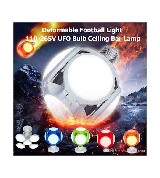 Football UFO Lamp Διακοσμητικό Φωτιστικό Λαμπτήρας με Ντουί για Λαμπτήρα E27 σε Ασημί Χρώμα
