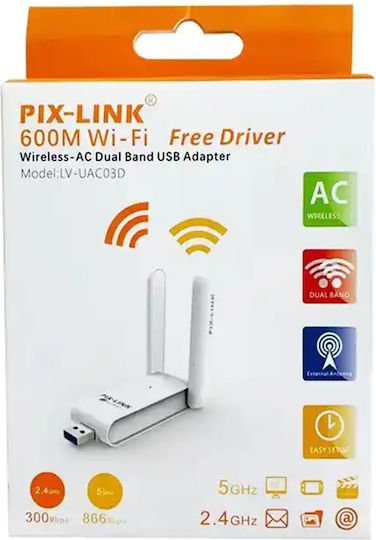 Pix-Link 2.4/5GHZ Ασύρματος USB Αντάπτορας Δικτύου 600Mbps