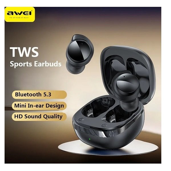 Awei T70 Earbud Bluetooth Handsfree Ακουστικά με Αντοχή στον Ιδρώτα και Θήκη Φόρτισης Μαύρα 45462105
