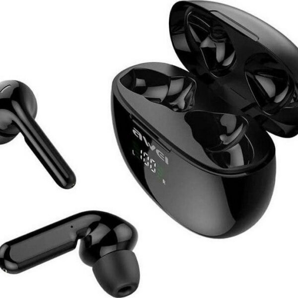Awei T13 Pro Earbud Bluetooth Handsfree Ακουστικά με Αντοχή στον Ιδρώτα και Θήκη Φόρτισης Μαύρα