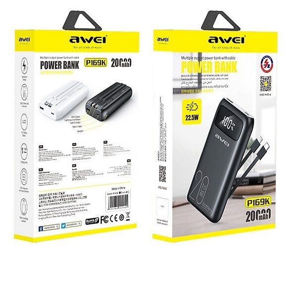 Awei P169K Power Bank 20000mAh 22.5W Power Delivery Μαύρο