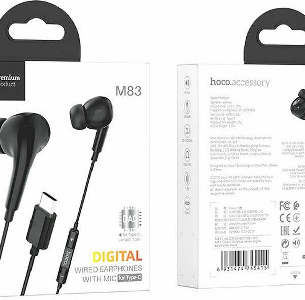 Hoco M83 In-ear Handsfree με Βύσμα USB-C Μαύρο