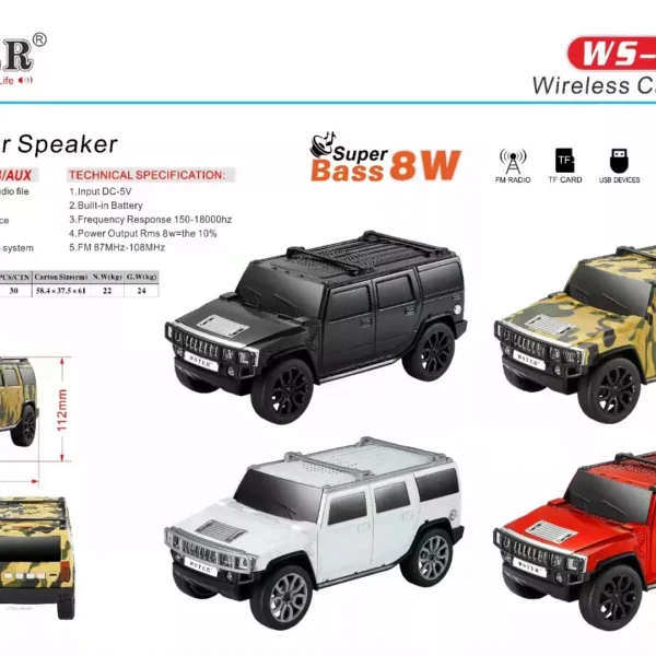 Φορητό ηχείο Hummer speaker car με BT, USB,TF, RADIO WSTER 20W WS-590 Κόκκινο