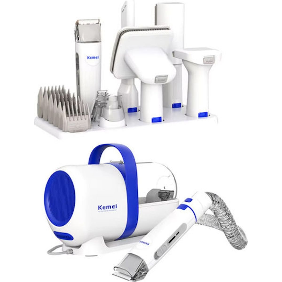 Η ηλεκτρική σκούπα για κατοικίδια Kemei One Stop Grooming Kit 15 σε 1 προσφέρει επαγγελματική περιποίηση στο σπίτι με ισχυρή αναρρόφηση, λειτουργία χαμηλού θορύβου και ευέλικτη σειρά 6 κεφαλών βούρτσας.