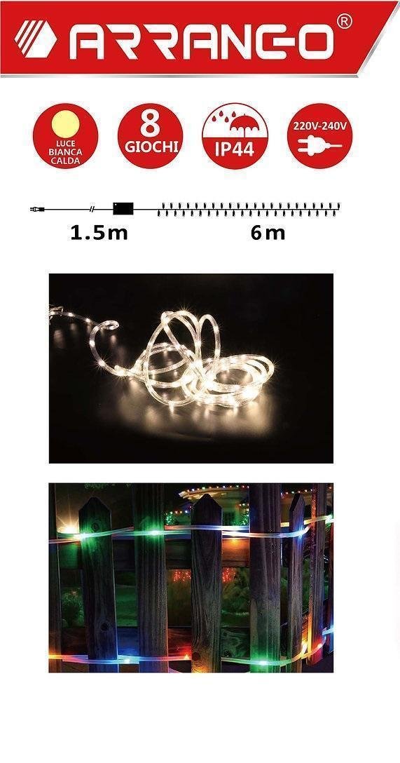 Αδιάβροχος Φωτοσoλήνας 220-240V 6m IP44 Με πρόγραμμα, 8 λειτουργίες εξωτερικού και εσωτερικού χώρου Arrango AN77284 Θερμό λευκό