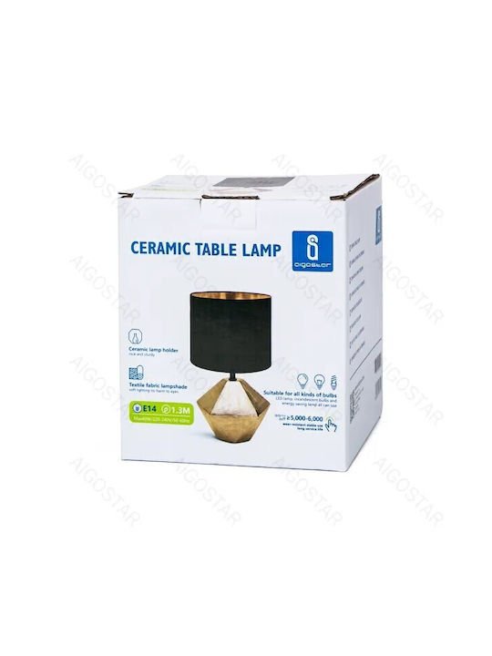 Aigostar Κεραμικό Πορτατίφ με Μαύρο Καπέλο και Χρυσή Βάση MRE 197155