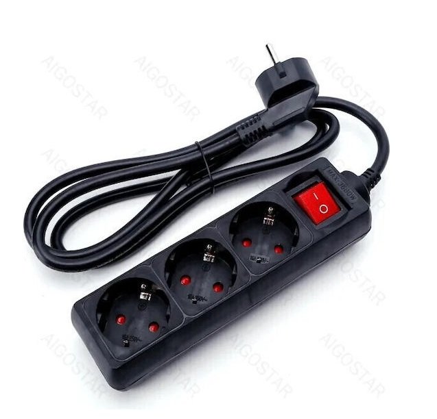 Aigostar Πολύπριζα Γερμανικού Τύπου 3 Θέσεων Μαύρο Με Διακόπτη Ασφαλείας Μήκος καλωδίου 1,5μ MRE 198206