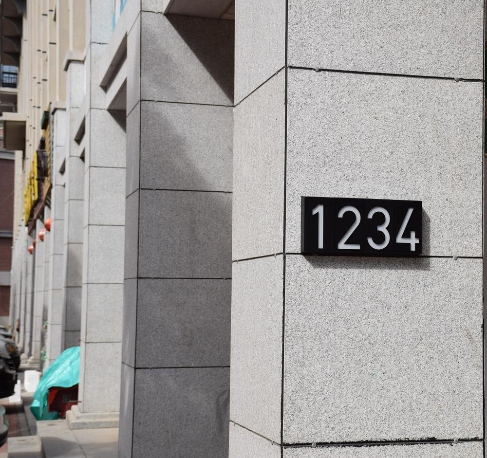 Ηλιακός φωτισμός που ανάβει αυτόματα το βράδυ και φωτίζει το νούμερο που εσείς έχετε επιλέξει.