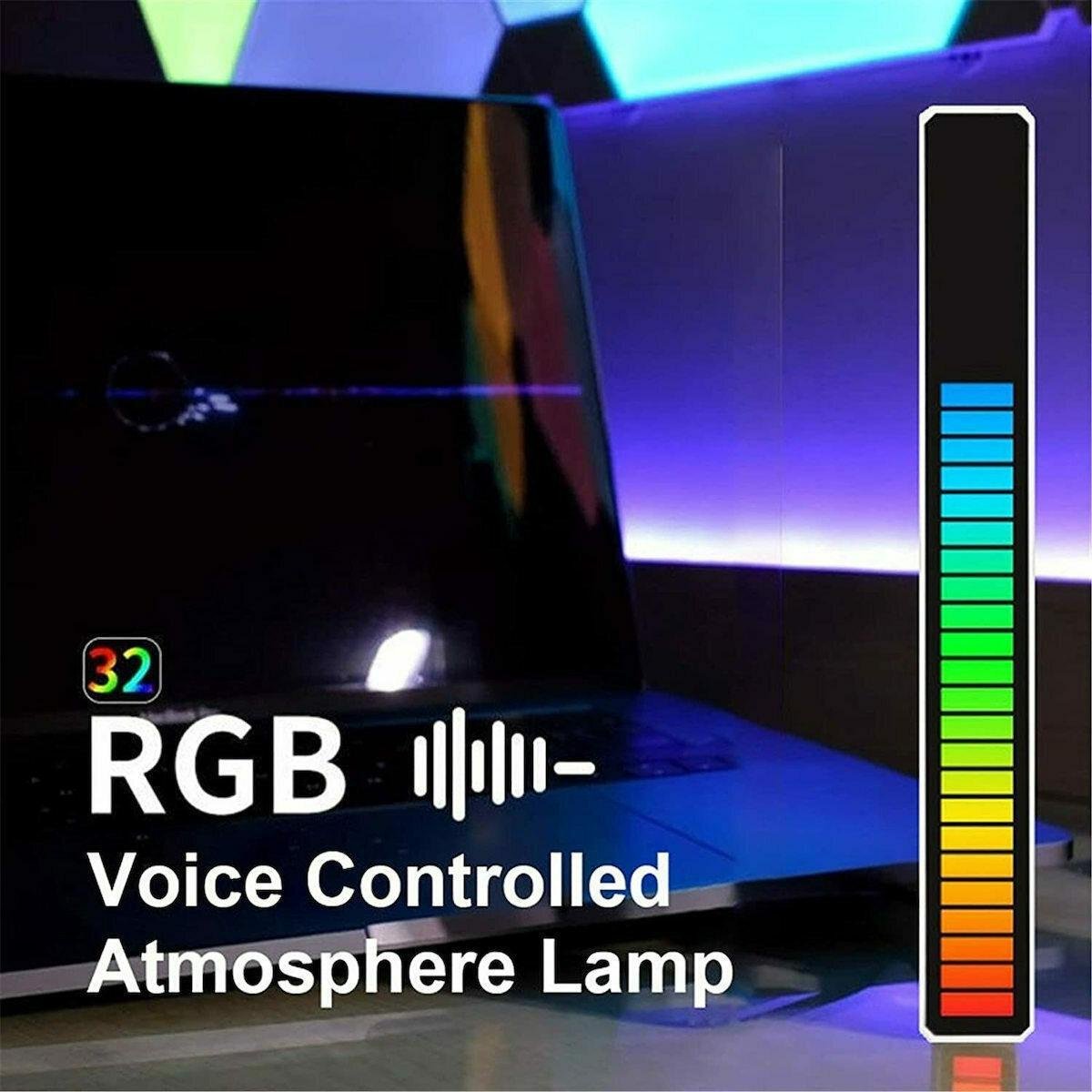 ARRANGO RGB LED Music Sync Sound Control Rhythm Strip Light 19*1.7cm (επαναφορτιζόμενη) 1Τμχ Black