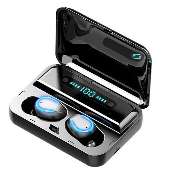 Ασύρματα Επαναφορτιζόμενα Ακουστικά με σύνδεση Bluetooth 5.0 και θήκη φορτιστή σε μαύρο χρώμα, F9-5 – Aria Trade
