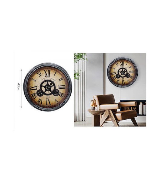Αθόρυβο Αντικέ Ρολόι Τοίχου Μεταλλικό Πολύχρωμο 60cm SPR-SDS-19545-OEM