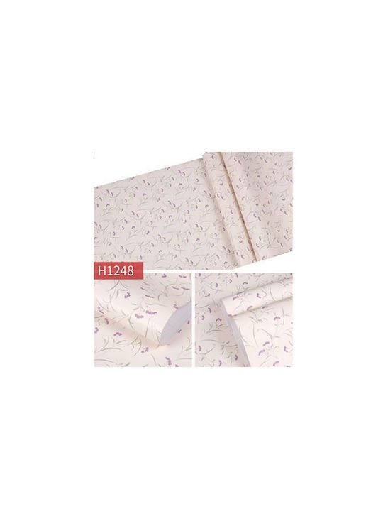 Αυτοκόλλητη Ταπετσαρία Τοίχου Μπεζ με Μωβ Λουλούδια 45cmx2m – 24367
