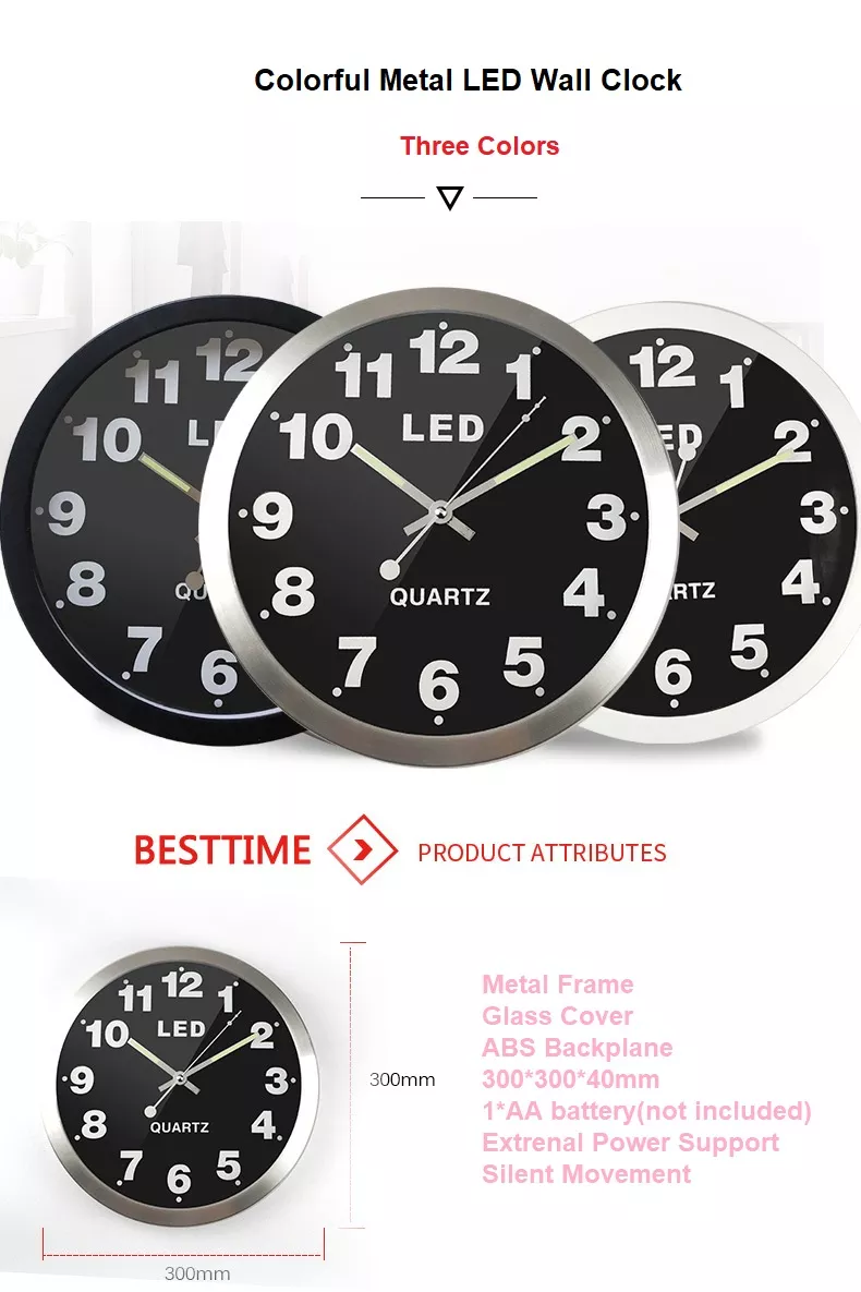 Bosheng Στρογγυλό ρολόι τοίχου 30εκ με οπίσθιο φωτισμό LED GH1207 Πολύχρωμο Ασημί
