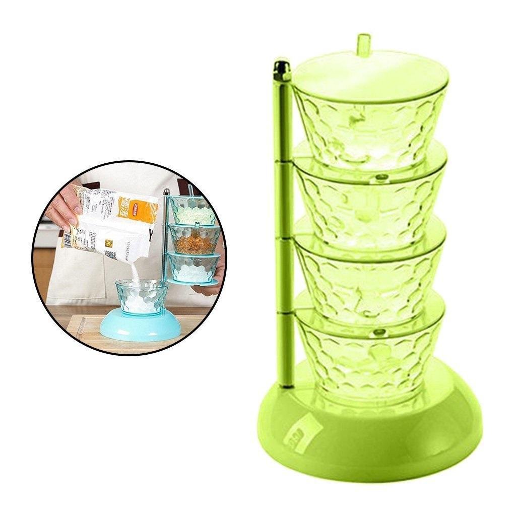 Διαφανές κουτί καρυκευμάτων 4 Επιπέδων με λαβή κουτάλι Πράσινο