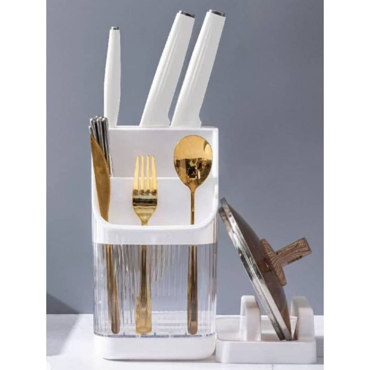 Το στραγγιστήρι για τα μαχαιροπίρουνα σας βοηθάει στην οργάνωση και διατήρηση ενός καθαρού και τακτικού χώρου στην κουζίνα σας. Είναι ιδανικό να αποστραγγίζει τα νερά από τα μαχαιροπίρουνα και τα εργαλεία μαγειρικής που χρησιμοποιείτε στην κουζίνα σας. Μπορεί να τοποθετηθεί δίπλα από τον νεροχύτη.