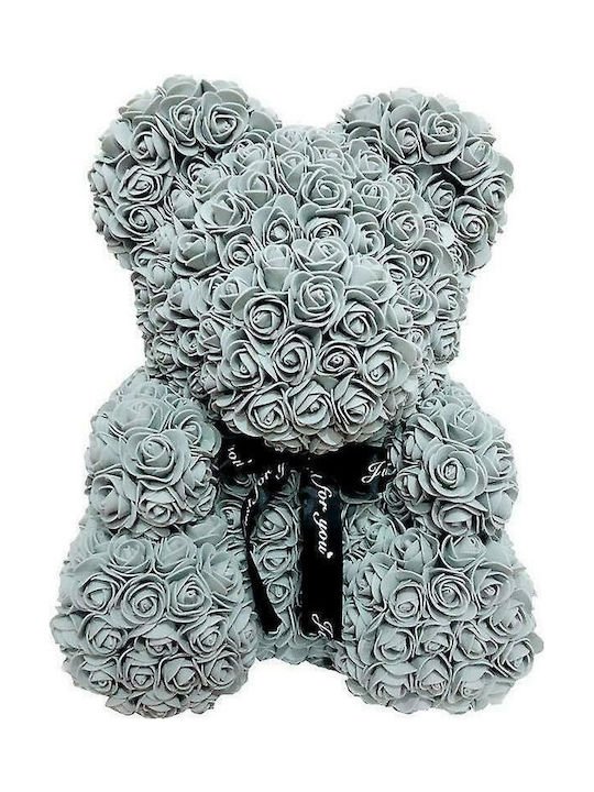 Δωρόσημο Αρκουδάκι από Τεχνητά Τριαντάφυλλα Μεγάλο Grey 40cm Σε Κουτί