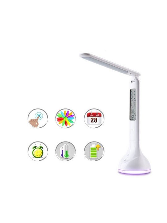 Επαναφορτιζόμενο φωτιστικό γραφείου με ενσωματωμένο LED και αναδιπλούμενο βραχίονα, σε λευκό χρώμα.