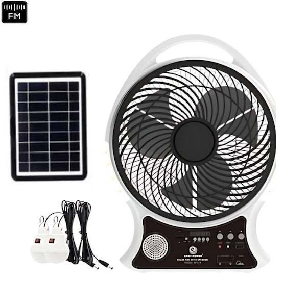 Επαναφορτιζόμενος Ηλιακός Ανεμιστήρας Ραδιόφωνο Θύρα Φόρτισης Usb 2 Λάμπες Ηλιακό Πάνελ Andowl Q-f620
