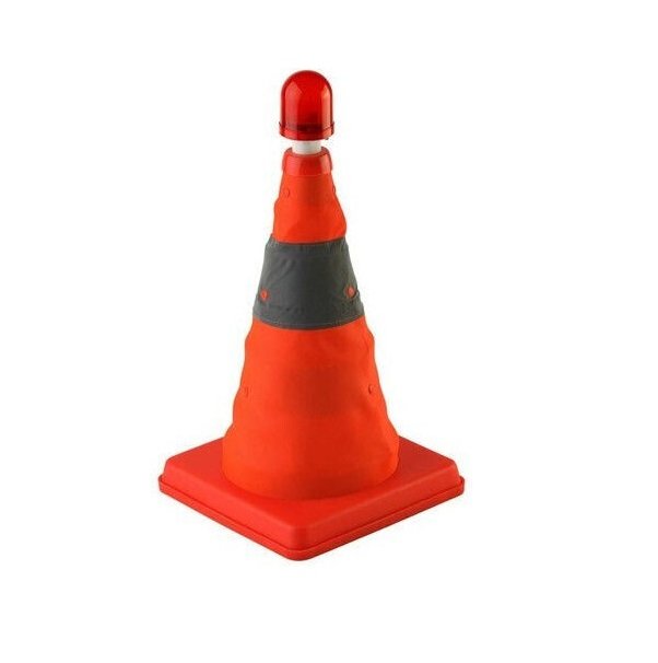 Επεκτεινόμενος κώνος κυκλοφορίας με φάρο σε πορτοκαλί χρώμα, ιδανικός για την επισήμανση επικίνδυνων σημείων στο οδόστρωμα και την εκτέλεση τεχνικών έργων. Μπορεί να τοποθετηθεί και σε περιπτώσεις αναγκαστικής στάσης στο δρόμο, ώστε να ειδοποιούνται τα άλλα αυτοκίνητα ή σε χώρους στάθμευσης.