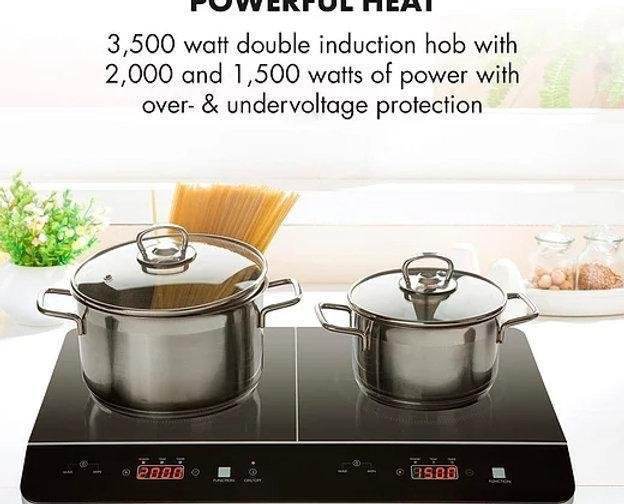 Διπλή επαγωγική πλάκα, συνολικής ισχύος 3500W με δύο ζώνες μαγειρέματος αντίστοιχα με μέγιστη ισχύ 2000W και 1500W.