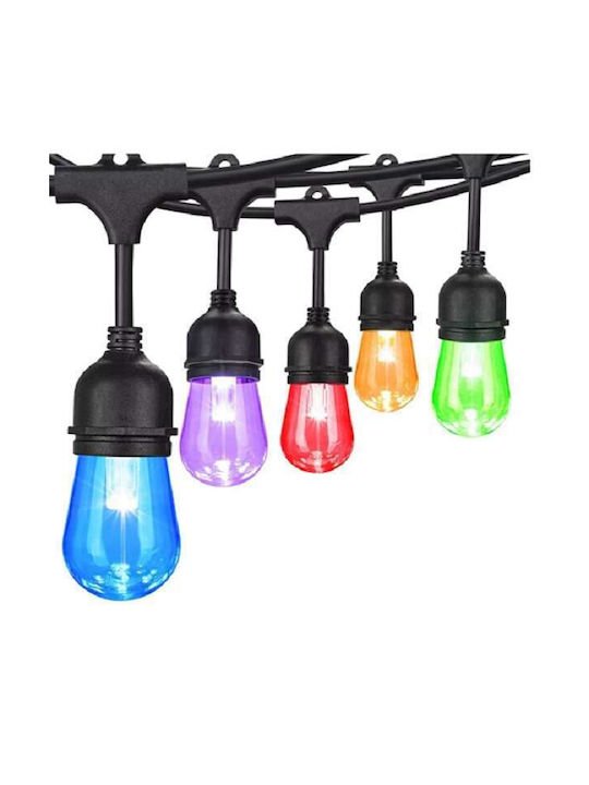 LED αδιάβροχη γιρλάντα ηλιακής ενέργειας με 10 λάμπες Ε27 κατάλληλη για εσωτερικούς και εξωτερικούς χώρους. Μπορεί να τοποθετηθεί κρεμαστά στον κήπο ή την βεράντα σας παρέχοντας τον απαραίτητο φωτισμό, ενώ δημιουργεί και την κατάλληλη ατμόσφαιρα κατά τις βραδινές ώρες.