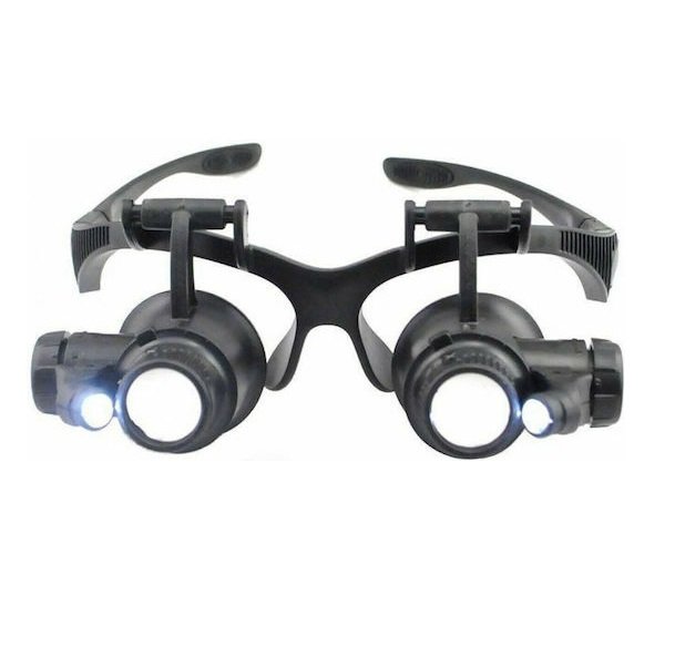 Διπλός μεγεθυντικός φακός και για τα 2 μάτια με LED. Διαθέτει 3 διαφορετικές επιλογές μεγέθυνσης που αλλάζουν πολύ γρήγορα. Ιδανικό για μικρο-επισκευές μηχανικές ή ηλεκτρονικές, για τον έλεγχο γνησιότητας κοσμημάτων και αντικών, για την επισκευή ρολογιών και μινιατούρων αλλά και για χάραξη αντικειμένων.