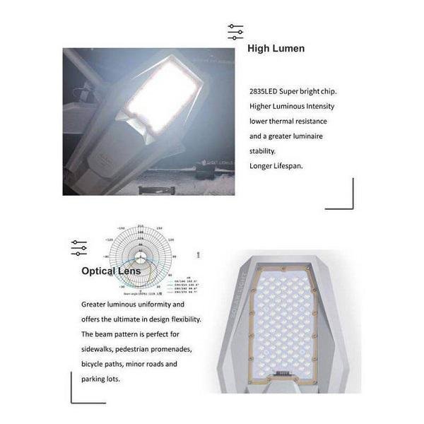 Ο προβολέας επαναφορτίζει αποκλειστικά και μόνο από τον ήλιο. Με αισθητήρα φωτός για να ενεργοποιείται όταν νυχτώνει.
