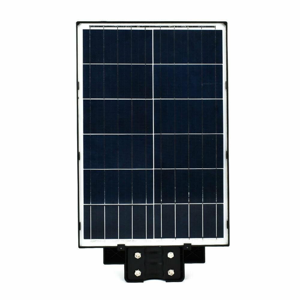 Ηλιακό φωτιστικό δρόμου σε μαύρο χρώμα, που συγκεντρώνει και αποθηκεύει ηλιακή ενέργεια για τη λειτουργία του, ώστε να μη χρειάζεται να συνδεθεί σε παροχή ρεύματος. Διαθέτει αισθητήρα φωτός για να ενεργοποιείται αυτόματα κατά τη δύση του ηλίου, αλλά και τηλεκοντρόλ ώστε να το χειρίζεστε από απόσταση.