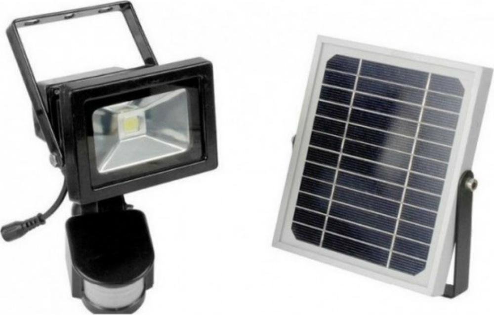 Ηλιακός προβολέας LED σε μαύρο χρώμα, με ισχύ 20W. Διαθέτει αισθητήρα κίνησης που έχει την ικανότητα να εντοπίζει μικρές μεταβολές στο περιβάλλον που έχουν προκληθεί, για παράδειγμα, από την κίνηση του ανθρώπινου σώματος, και να ενεργοποιεί τον προβολέα.