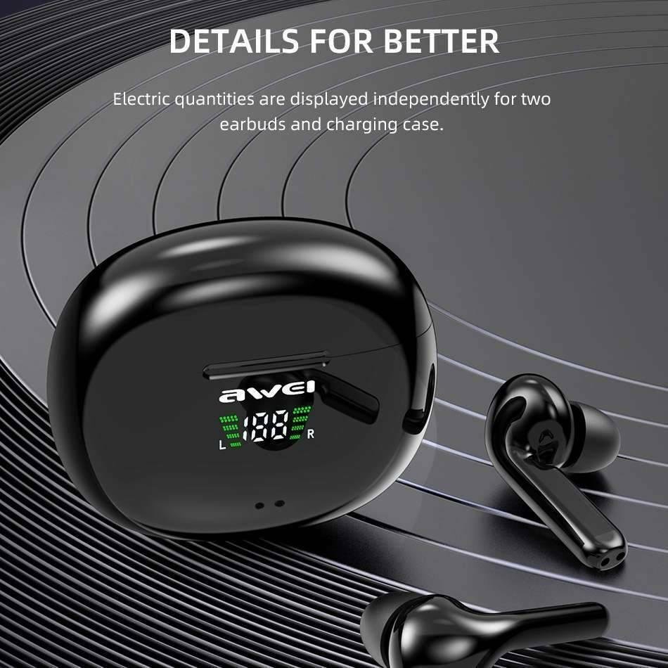 In-ear Bluetooth Handsfree Ακουστικά με Θήκη Φόρτισης Awei T15P Μαύρα