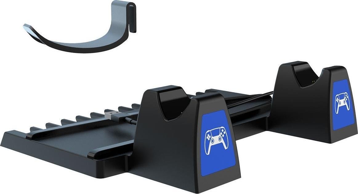 Το PG-P5009 δεν θα χρησιμεύσει μόνο ως φορτιστής για χειριστήρια, αλλά και ως βάση για PS5 και παιχνίδια – μπορεί να χωρέσει έως και 14 δίσκους. Επιπλέον, είναι εξοπλισμένο με βραχίονα στο οποίο μπορείτε να κρεμάσετε ακουστικά ή γυαλιά VR. Μπορείτε να το αποσυνδέσετε ανά πάσα στιγμή, εάν δεν το χρησιμοποιείτε αυτήν τη στιγμή. Χάρη σε αυτό, μπορείτε να έχετε τον εξοπλισμό και τα αξεσουάρ σας σε ένα μέρος, το οποίο όχι μόνο είναι βολικό αλλά και σας επιτρέπει να διατηρείτε τα πράγματα σε τάξη.